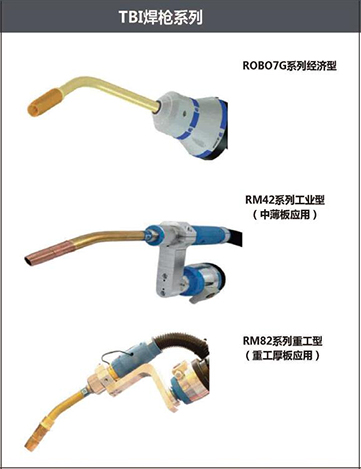 TBI焊枪系列包括ROBO7G系列经济型、RM42系列工业型(中薄板应用)、RM82系列重工型(重工厚板应用)。。。。